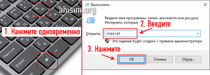 1. Натисніть одночасно клавіші win + r на клавіатурі і введіть команду-ncpa.cpl