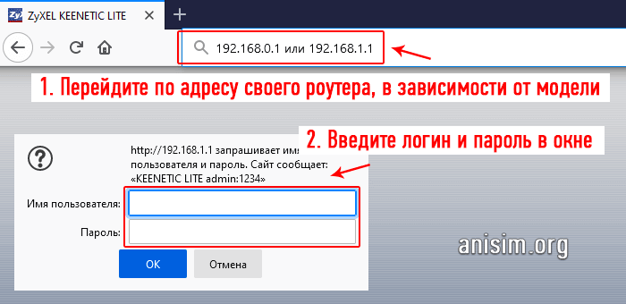 1. Введіть в браузері адресу: 192.168.0.1 або, якщо він не відкривається 192.168.1.1. Далі логін і пароль — admin, в обидва поля.