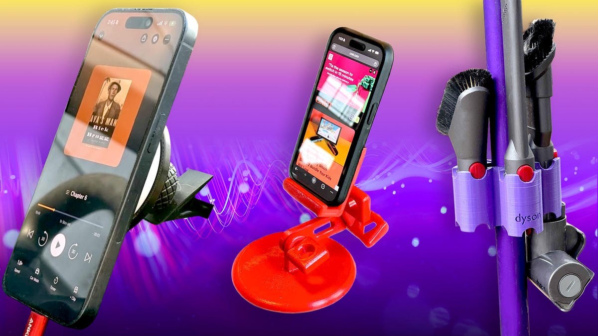 Más allá del almacenamiento y las herramientas, la impresión 3D permite la creación de accesorios funcionales como soportes ajustables para teléfono para uso doméstico o en el automóvil. Los diseños de Pork3D y SethMoser ofrecen soluciones simples y efectivas que se pueden personalizar con pintura (la pintura en aerosol Krylon Fusion Plastic proporciona un acabado suave) o almohadillas de carga MagSafe.